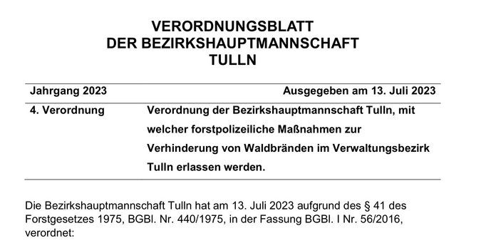 Waldbrandverordnung Juli 2023