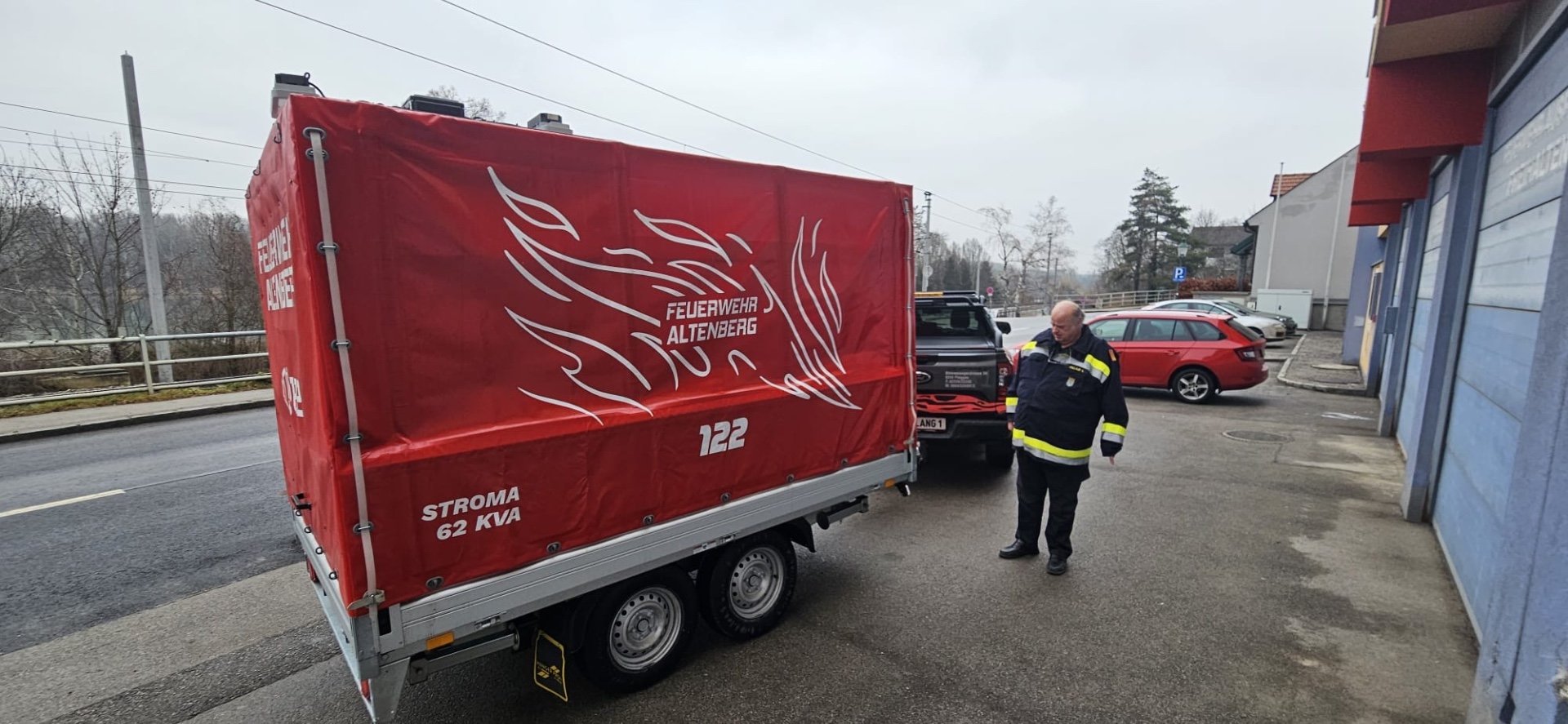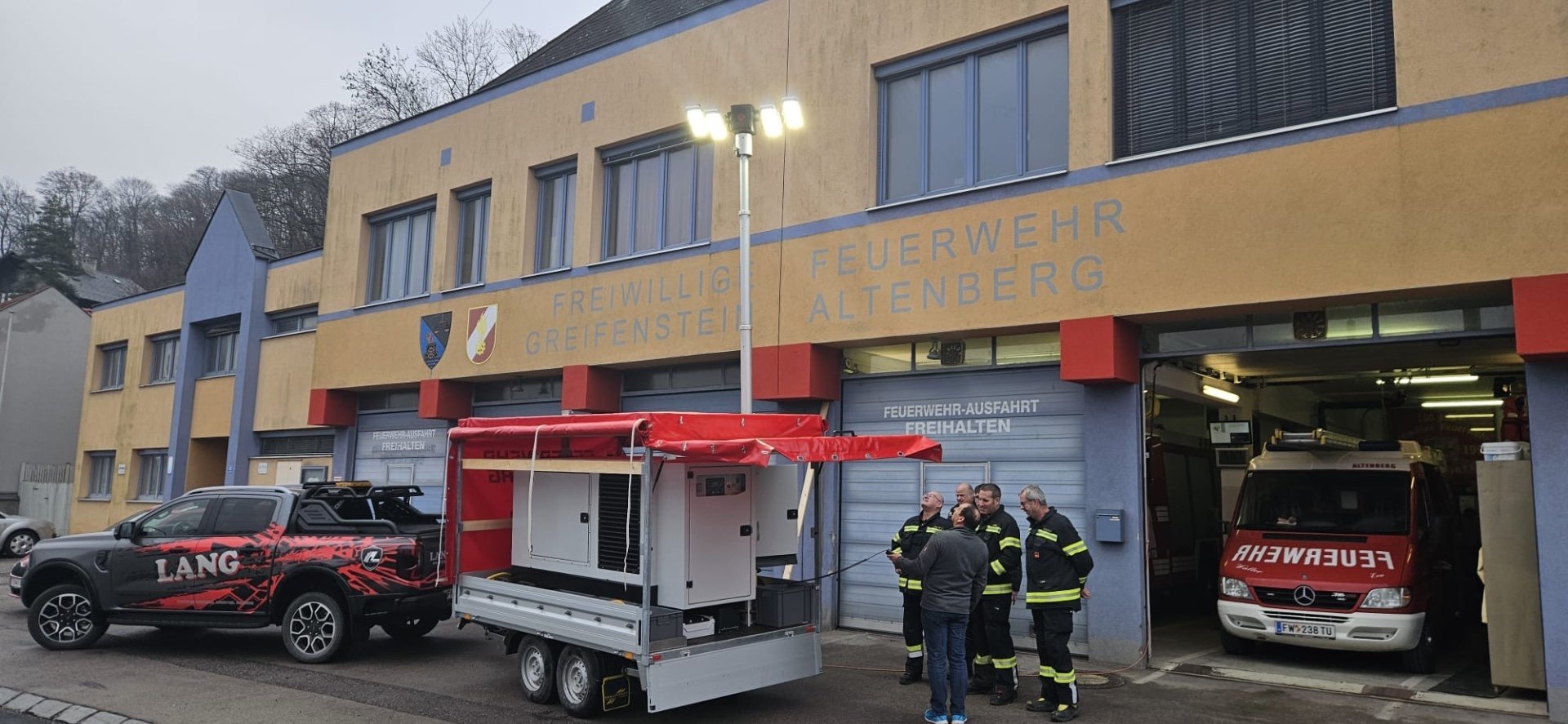 Die FF Altenberg hat für Notsituationen wie Blackout ein Notstromaggregat zur Versorgung des Feuerwehrhauses angeschafft. Auch für Einsätze, bei denen eine Stromversorgung notwendig ist, wird es zum Einsatz kommen. Zum Transport wurde das Gerät von der Firma Lang fix auf einen Anhänger samt Lichtmast aufgebaut.r