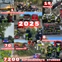 Wir sind 2025 zu 8 Brandeinsätzen ausgerückt. 70 technische Einsätze wie Menschenrettung, Verkehrsunfälle, Tierrettung, 1 Schadstoffeinsatz sowie eine Fehlausrückung wurden bewältigt.