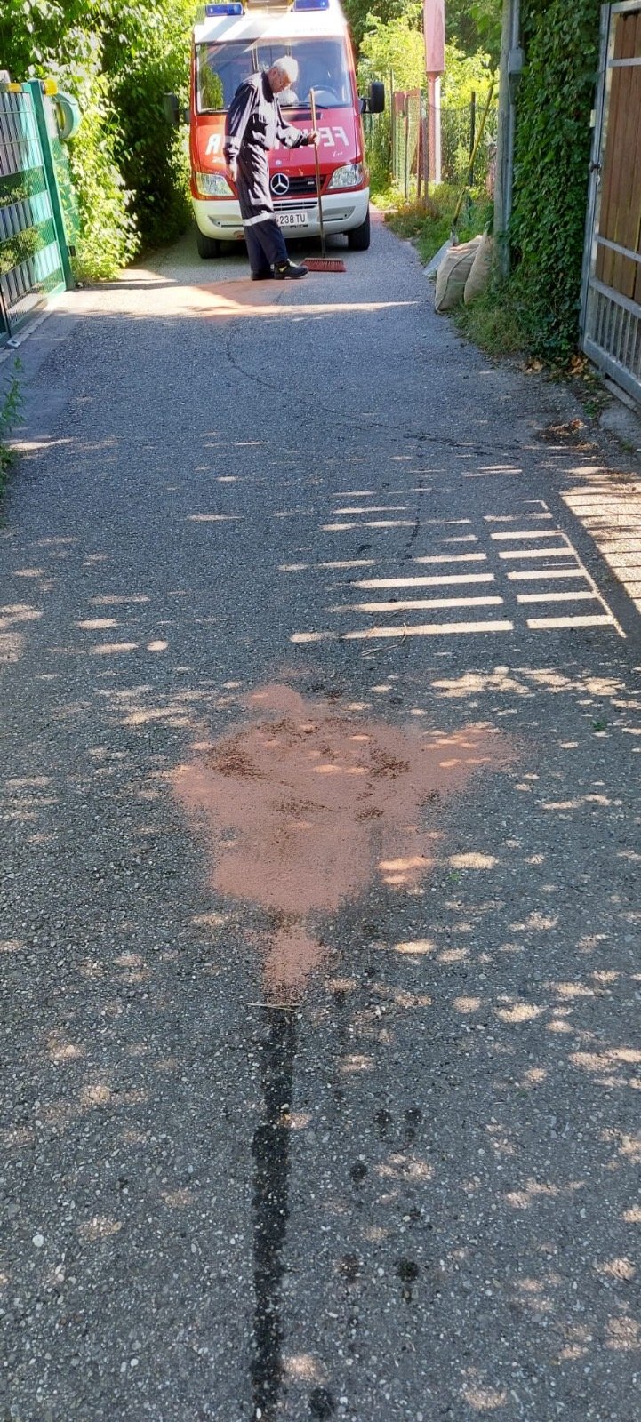 Nach der Entsorgung des Kadavers rückten wir zu einem Schadstoffeinsatz S1 aus und entfernten die Treibstoffspur mit Bindemittel.