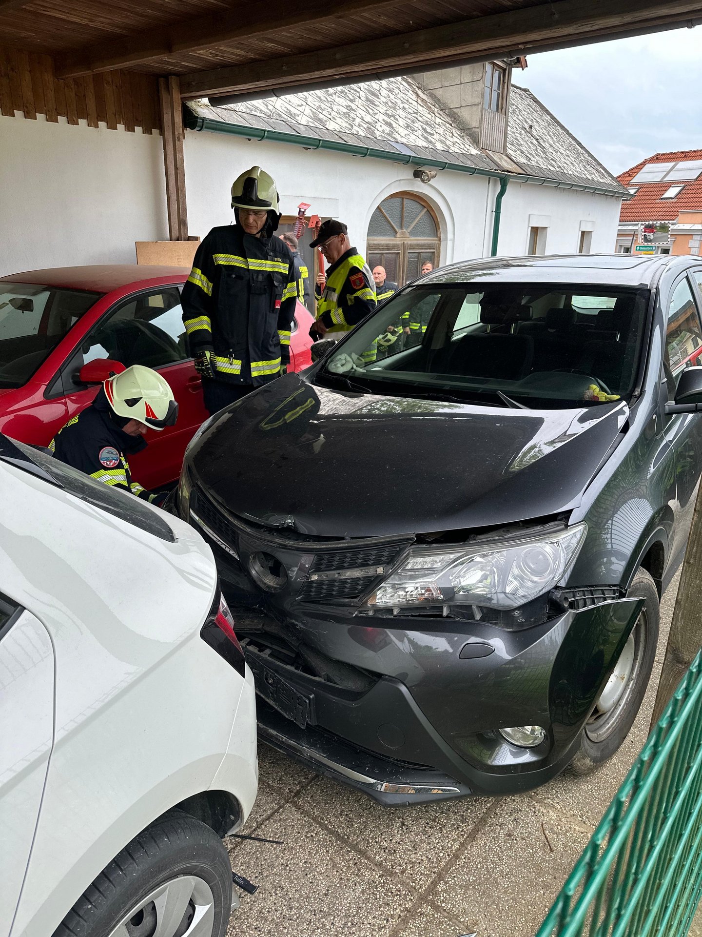 Am 30.5. wurden wir um 13:02 Uhr zu einem technischen Einsatz gerufen. Ein Fahrzeug war aus ungeklärter Ursache von der Fahrbahn abgekommen und gegen andere parkende Fahrzeuge geprallt. Durch die Wucht wurden ebenso eine Hauswand, ein Gartenhaus sowie ein Carport beschädigt. Zum Glück wurde niemand verletzt.