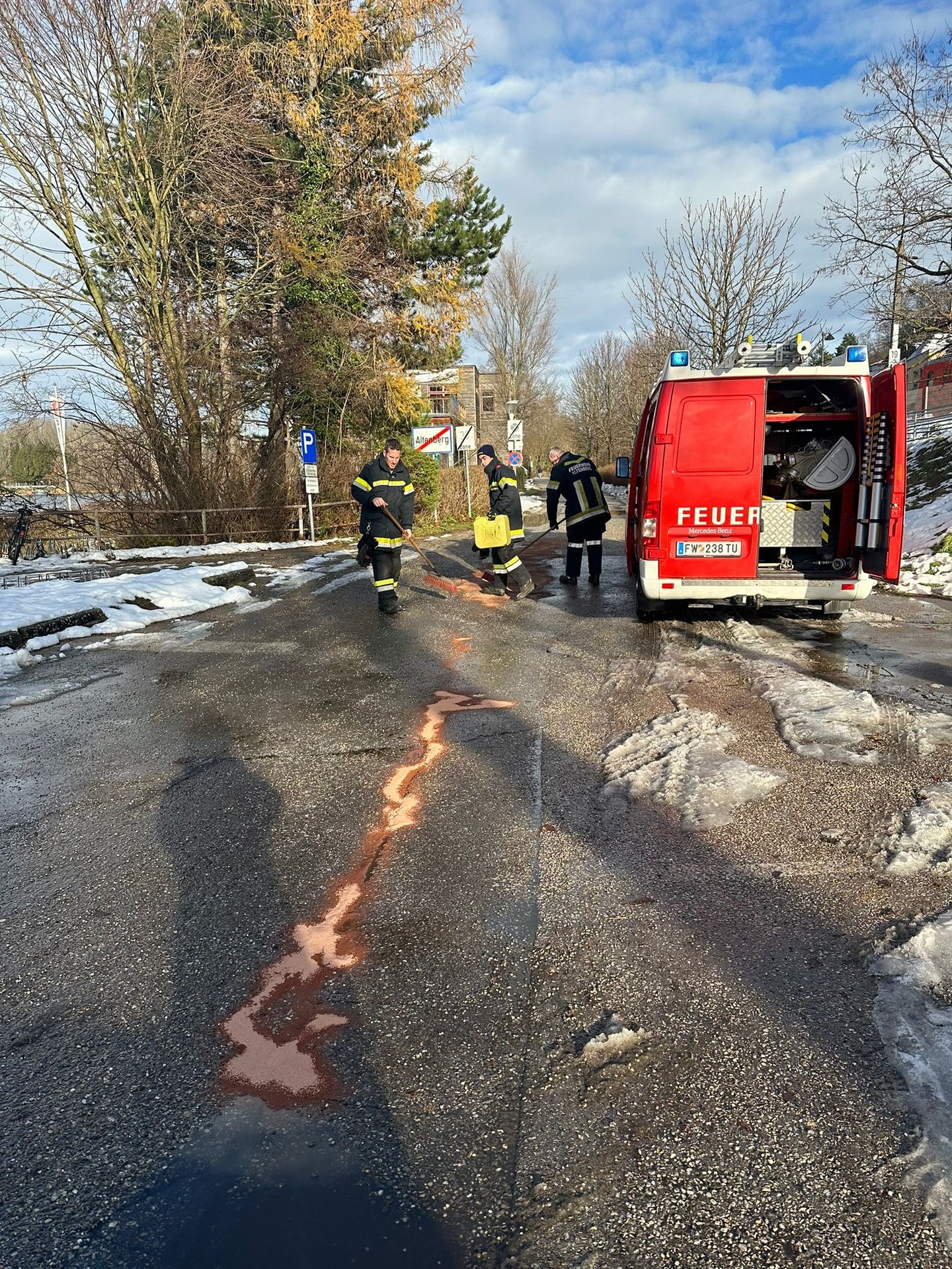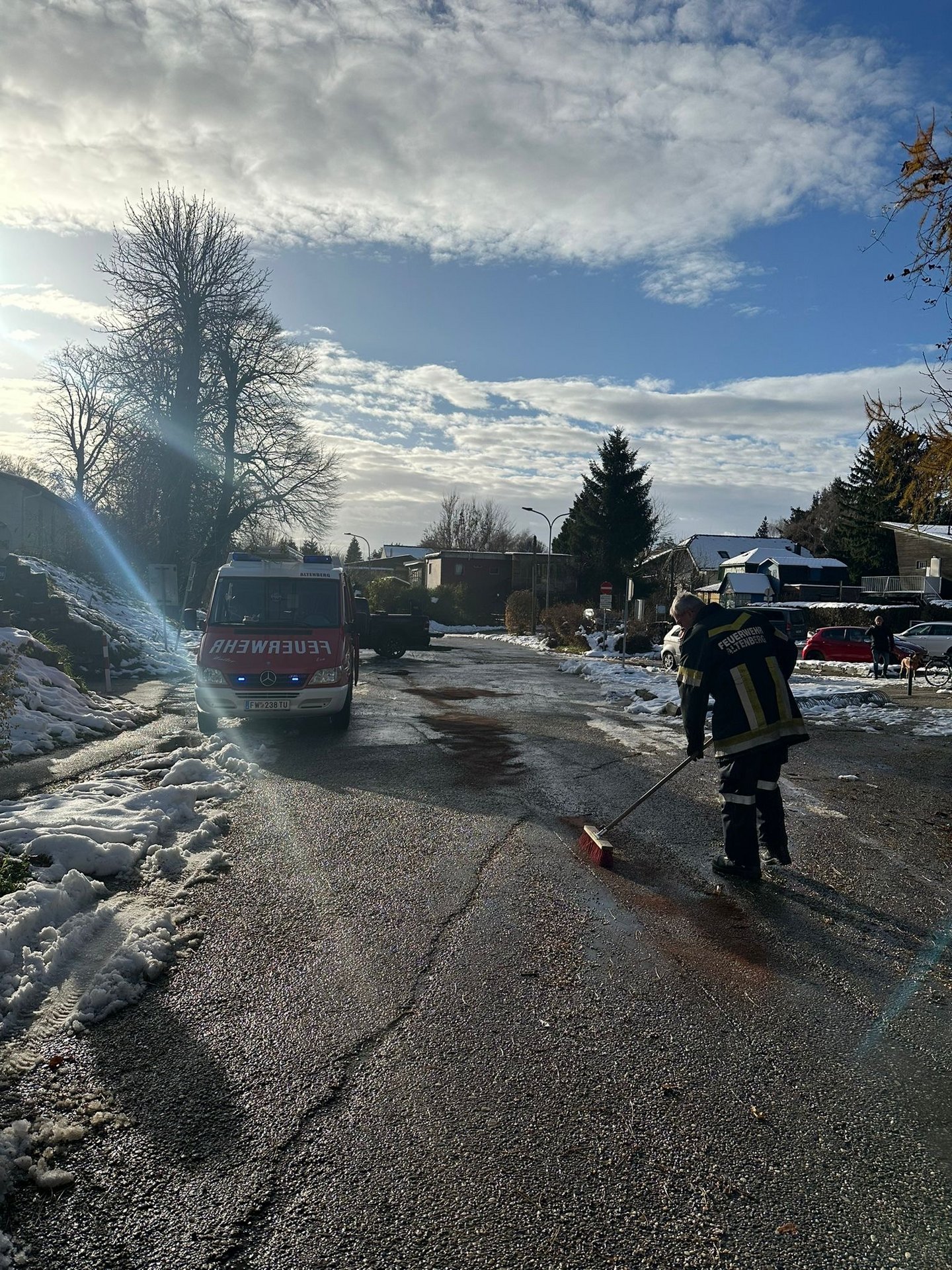 Am 10.12. wurden wir um 13:08 Uhr zu einem Schadstoffeinsatz gerufen. Es wurde eine meterlange Ölspur in der Kastanienallee gemeldet. Die Ölspur musste mit Bindemittel gebunden werden. Die Gemeinde wurde verständigt. Um 14:26 Uhr konnten wir wieder einrücken.