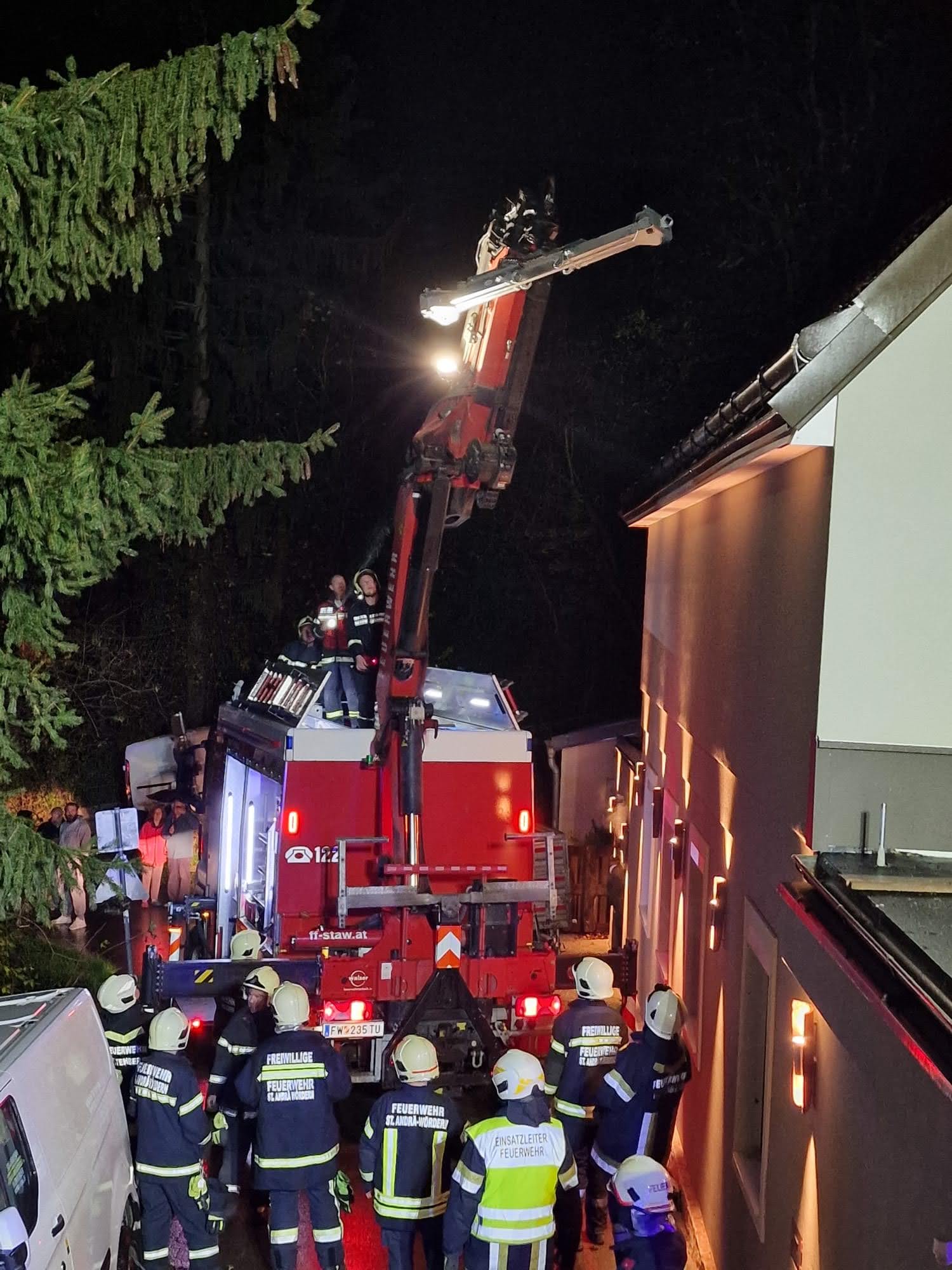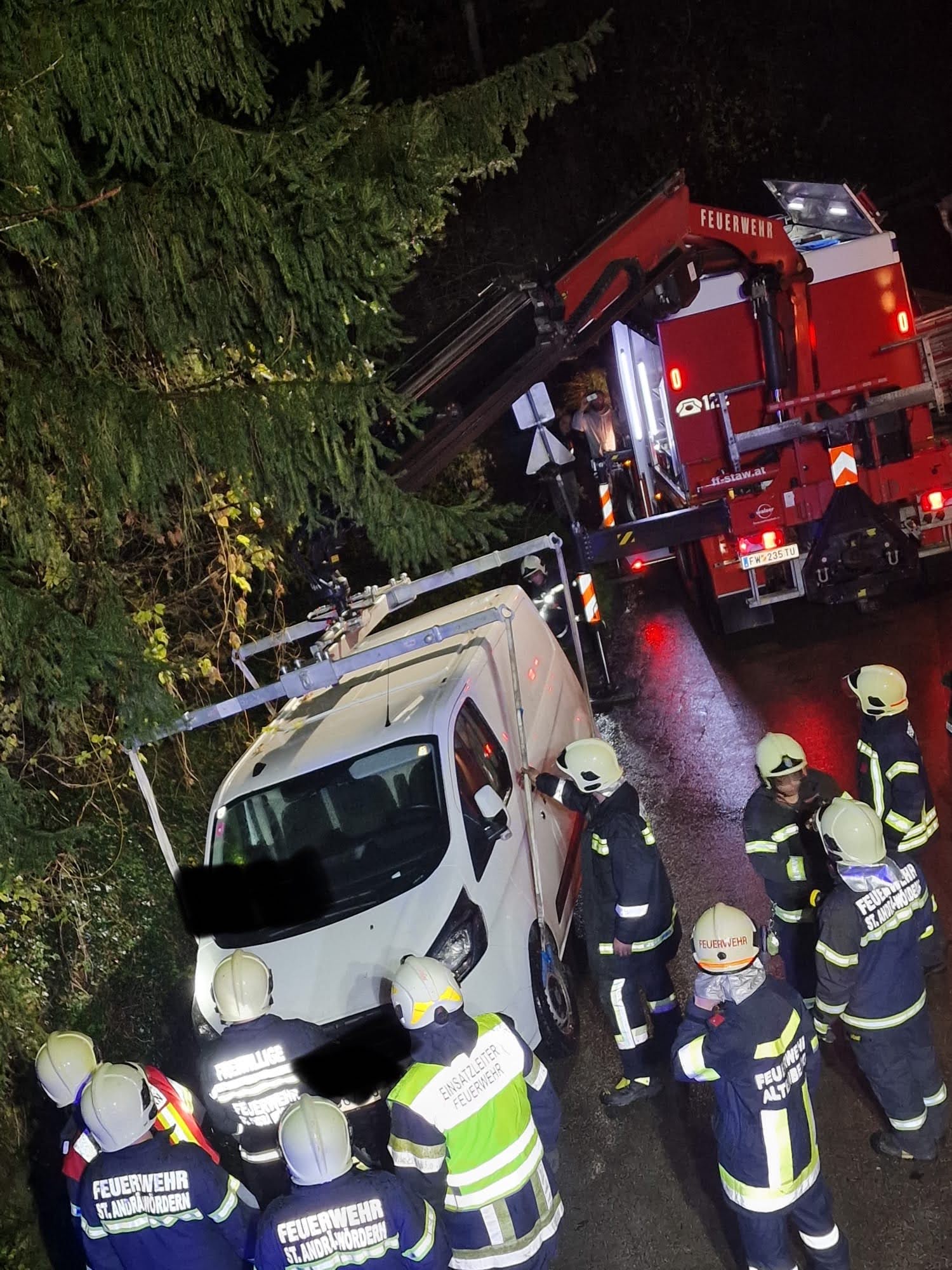 Am 16.11. wurden wir um 20:48 Uhr zu einer Fahrzeugbergung gerufen. Ein Fahrzeug eines Lieferdienstes war bei einem Graben hängen geblieben. Aufgrund der Lage des Fahrzeuges alarmierten wir die FF St. Andrä-Wördern, um mit dem Schweren Rüstfahrzeug das Fahrzeug auf die Straße zurück zu bringen.