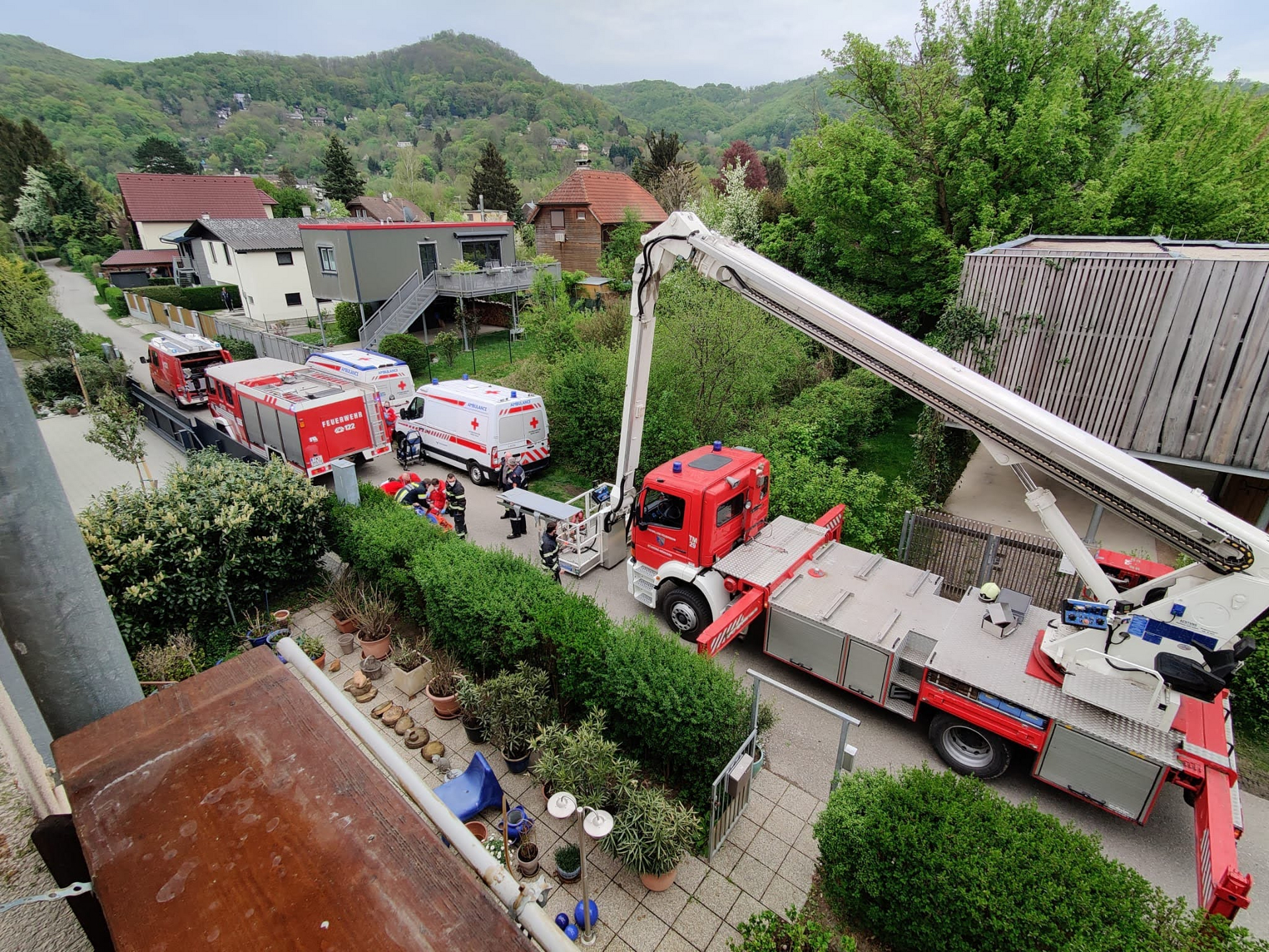 Am 27.04.2022 wurden wir um 17:19 Uhr zur Technischen Hilfeleistung/Unterstützung des Rettungsdienstes in die Badesiedlung gerufen. Die FF St. Andrä-Wördern wurde nachalarmiert, da eine Teleskopmastbühne benötigt wurde.