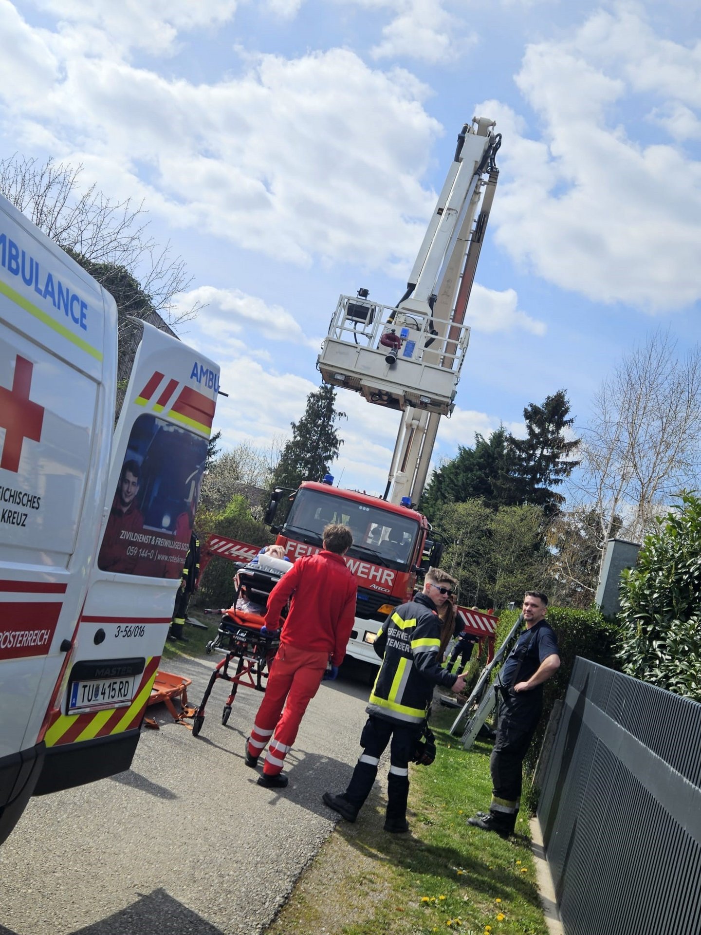 Am 6.4.2023 wurden wir um 13.30 Uhr zu einer Technischen Hilfeleistung als Tragehilfe für den Rettungsdienst in die Badesiedlung gerufen. Aufgrund der gegebenen Umstände wurde die FF St. Andrä-Wördern dazu gerufen, da die Rettung aus dem ersten Stock nur mit einer Teleskopmastbühne erfolgen konnte.