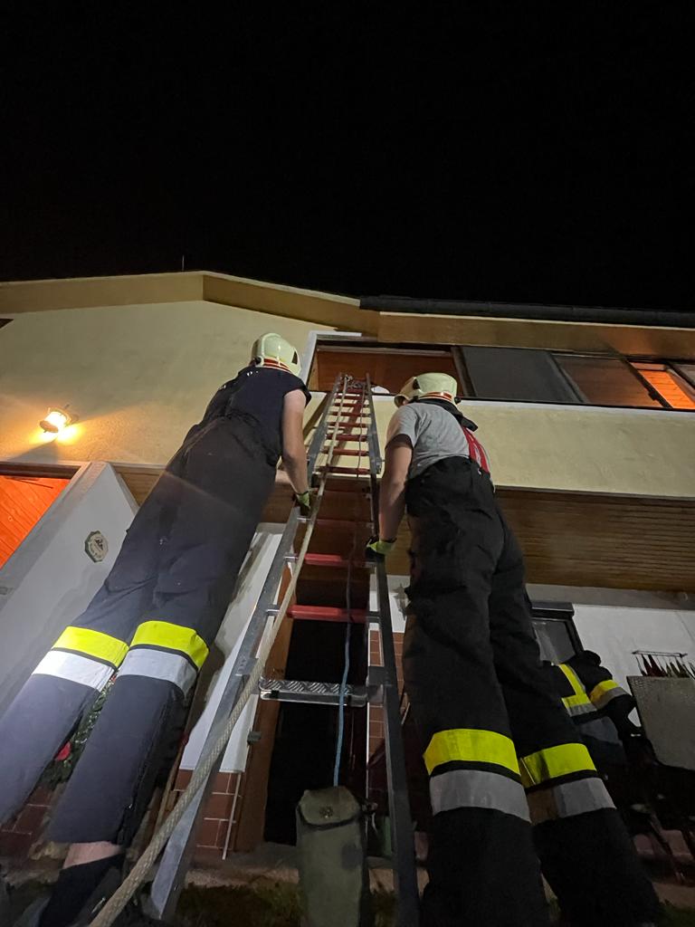 Da der Stiegenaufgang zu eng war und der Einsatz eines Höhenrettungsgerätes nicht möglich war, setzten wir einen sogenannten Leiterhebel ein. Schon nach wenigen Minuten konnte die Person vom Rettungsdienst übernommen werden.