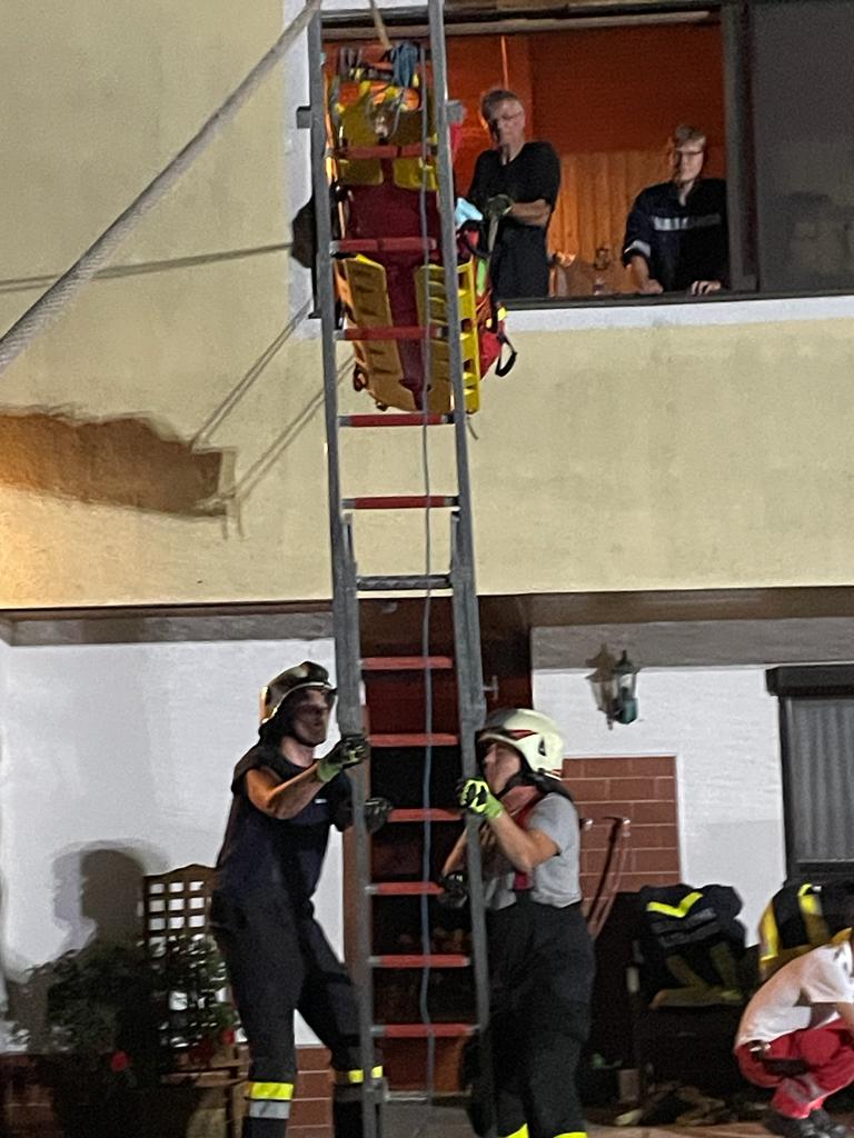 Es musste eine Person aus der oberen Etage eines Einfamilienhauses so schonend als möglich nach unten gebracht werden.