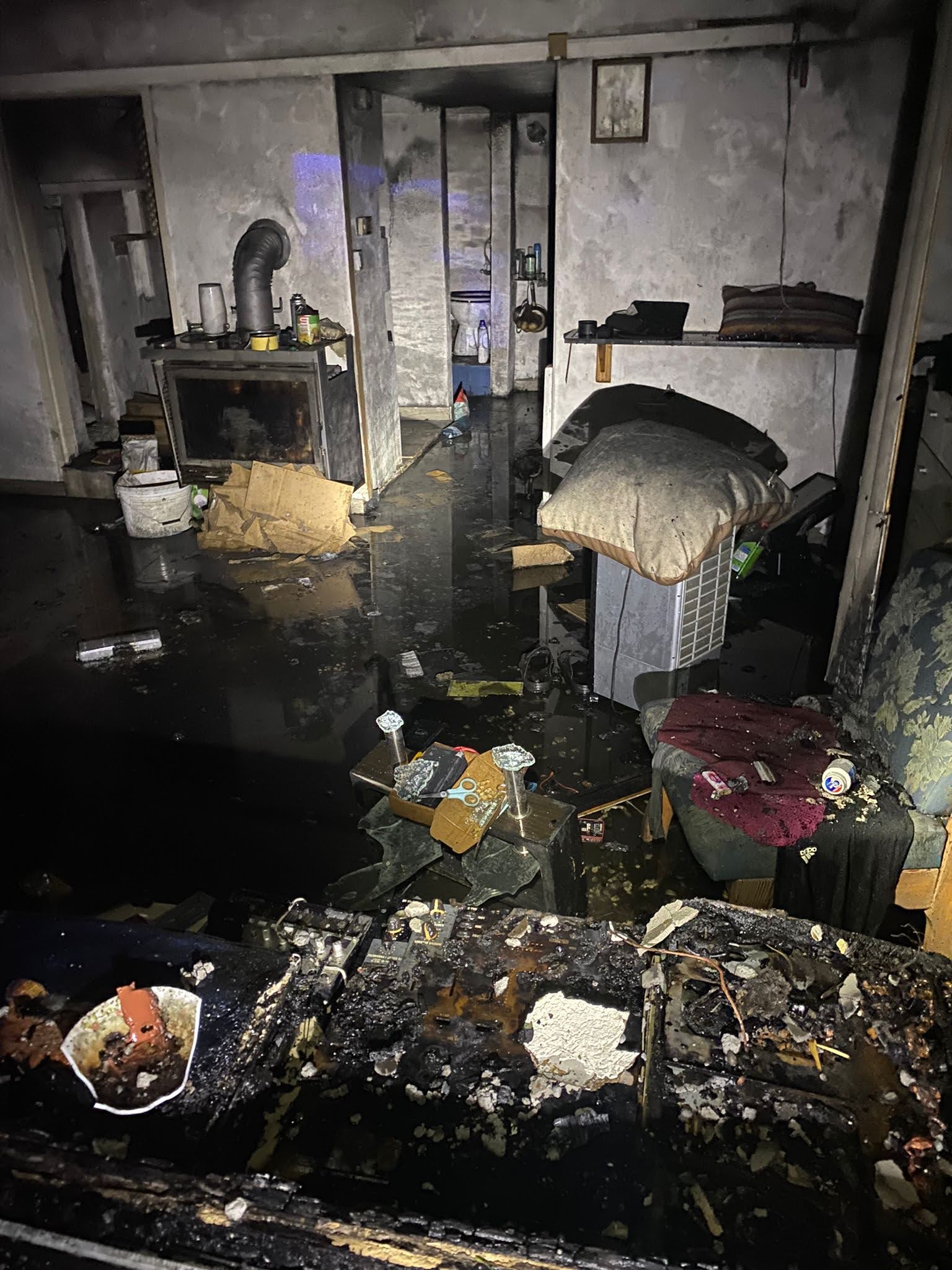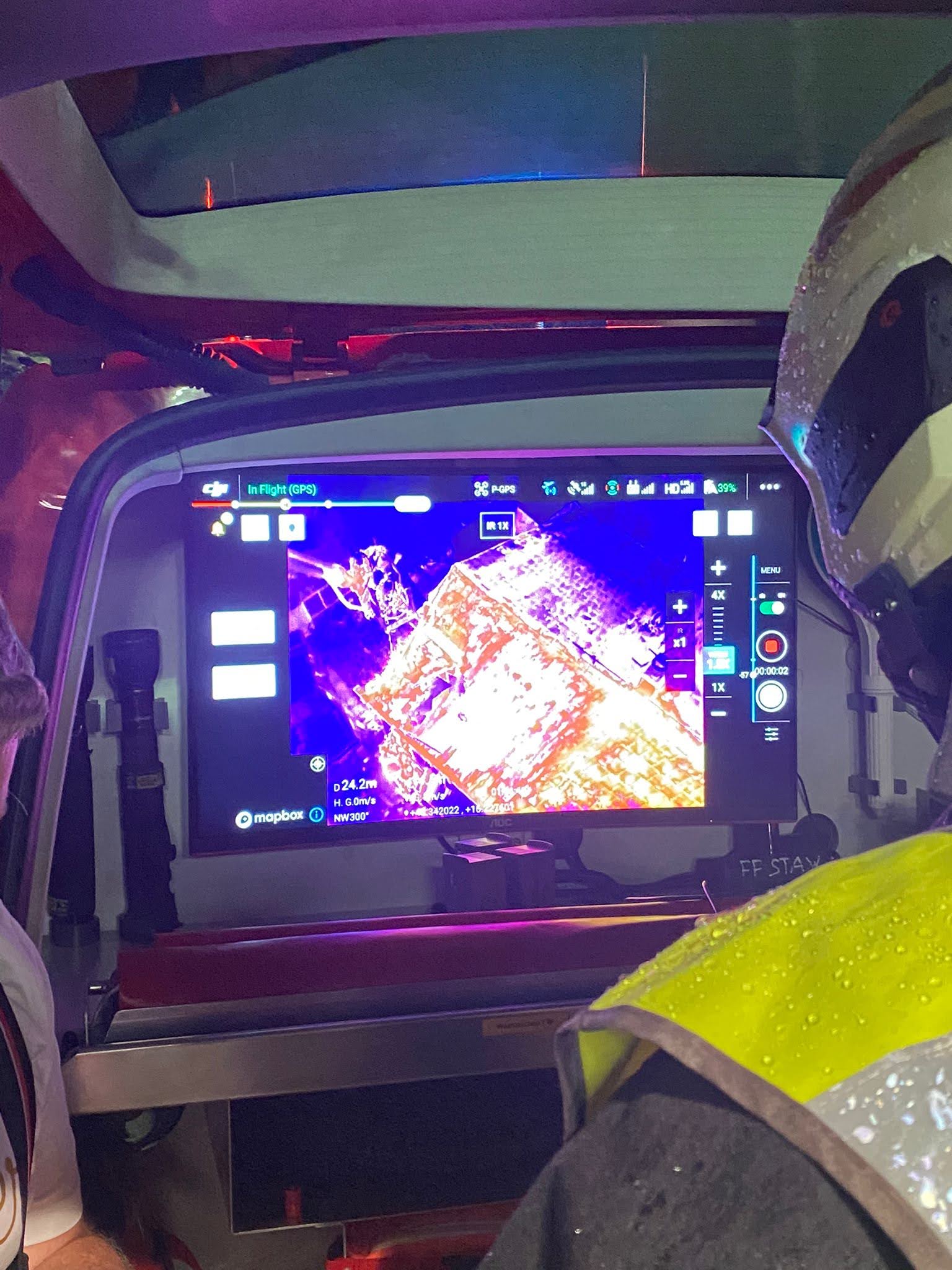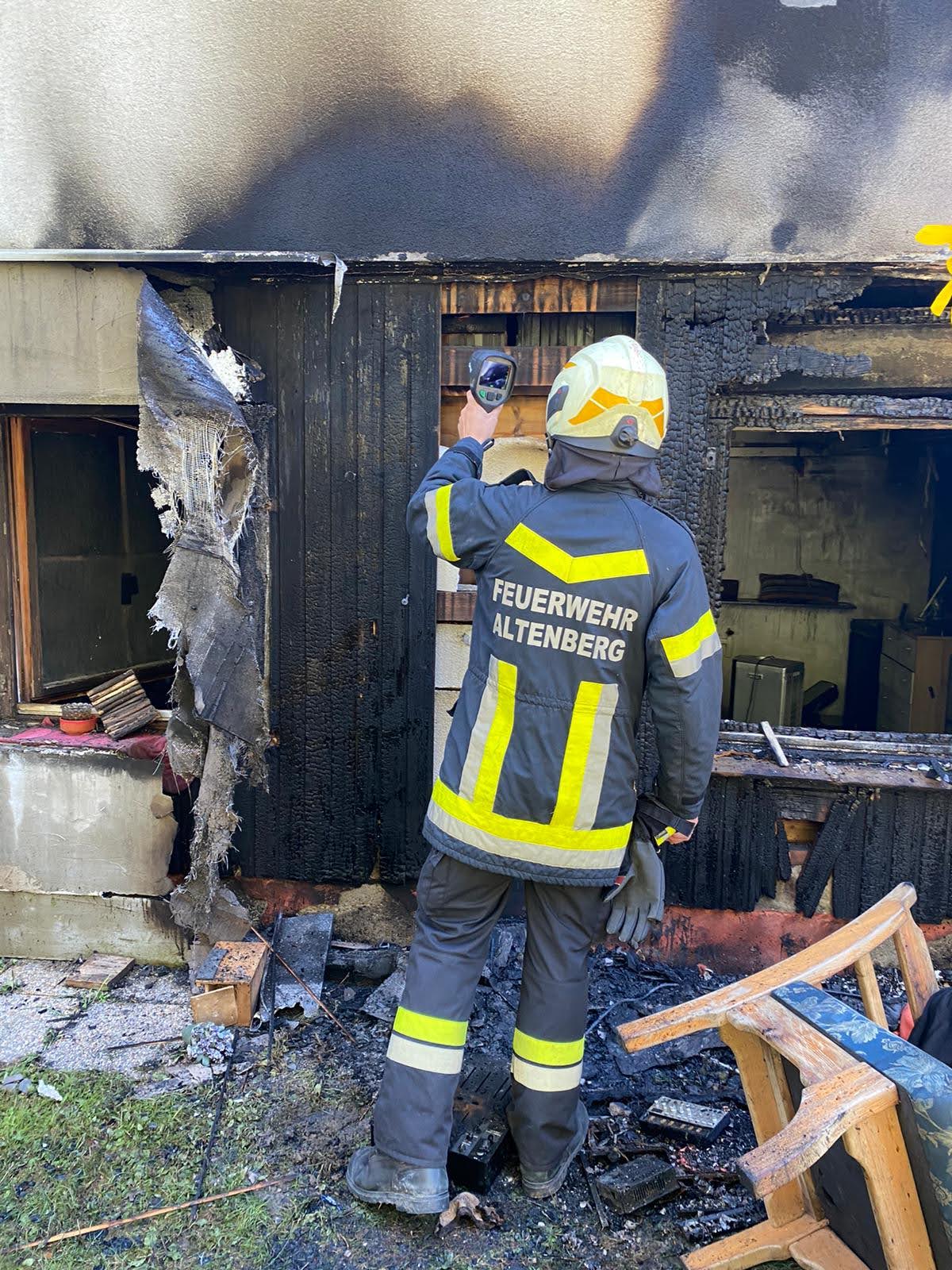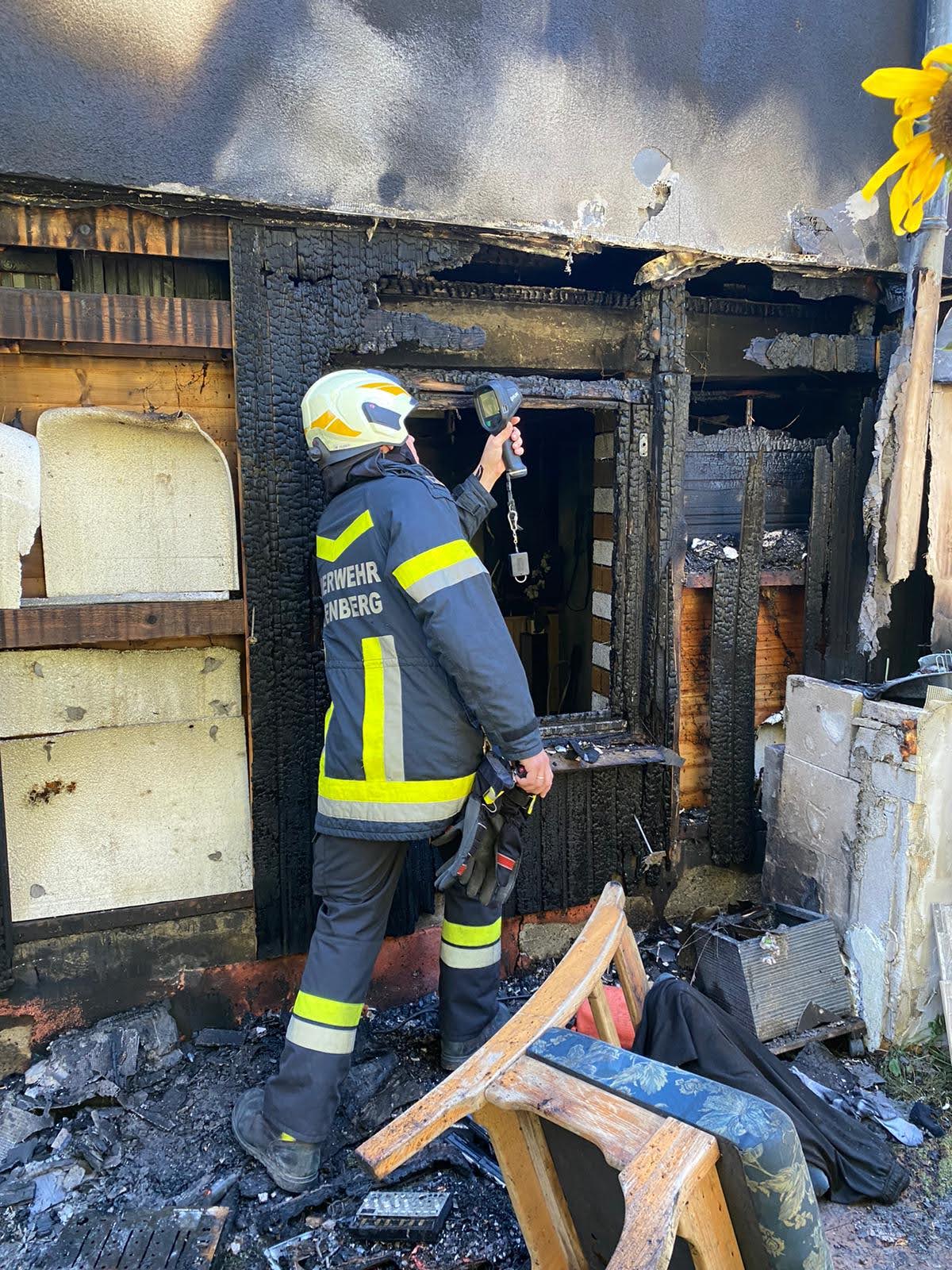Einige Stunden nach dem Einsatz kontrollierten wir den Einsatzort mit unserer Wärmebildkamera auf eventuelle Glutnester.