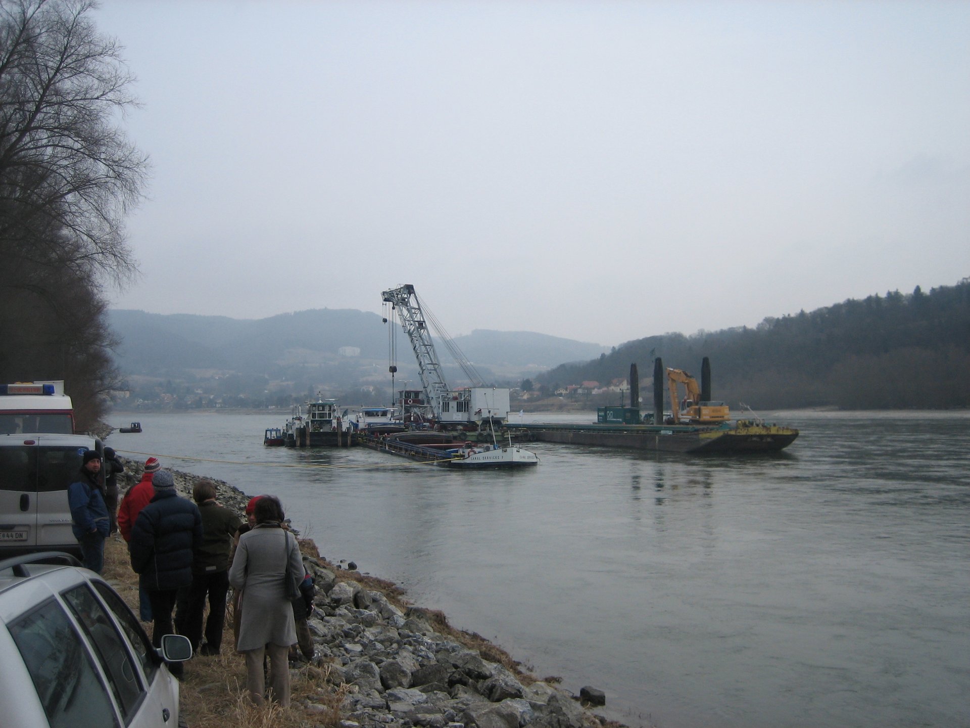 Am 05. Jänner 2008 waren Kameraden der Freiwilligen Feuerwehr Altenberg vor Ort beim Umladen von Stahlrollen in Emmersdorf - Melk. Das Umladen der Stahlrollen gestaltete sich aufgrund des großen Gewichtes - Gesamtgewicht 800 Tonnen, eine Stahlrolle wiegt 20 Tonnen - sehr schwierig.