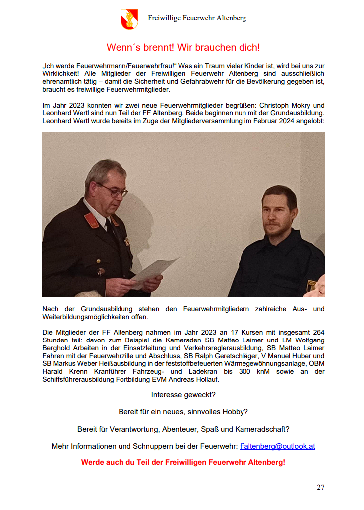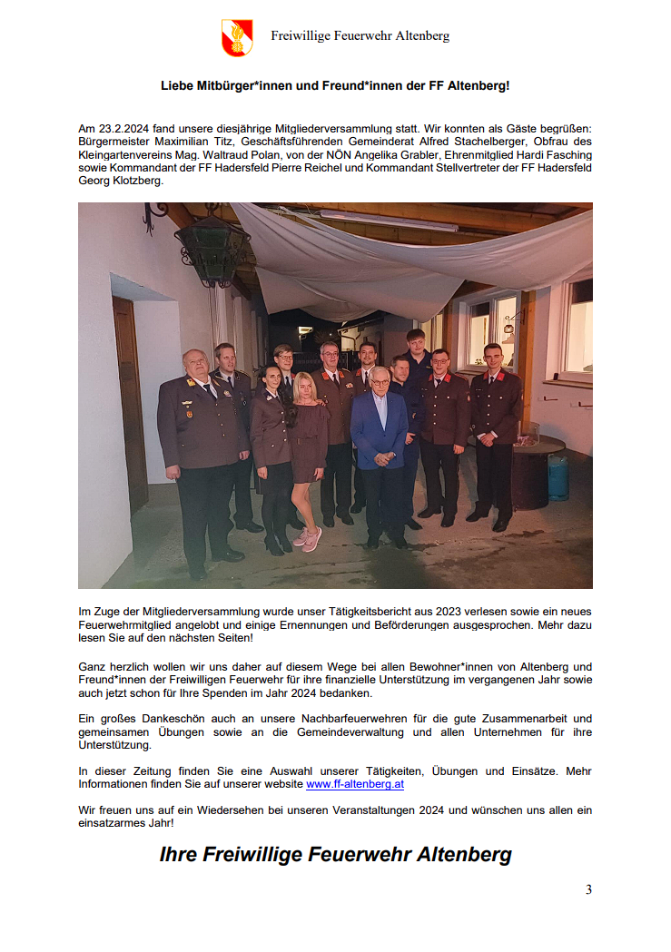 Altenberger FF Mitteilungen 2024