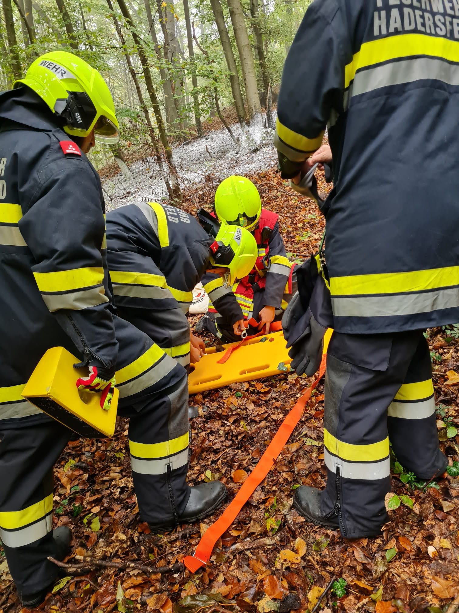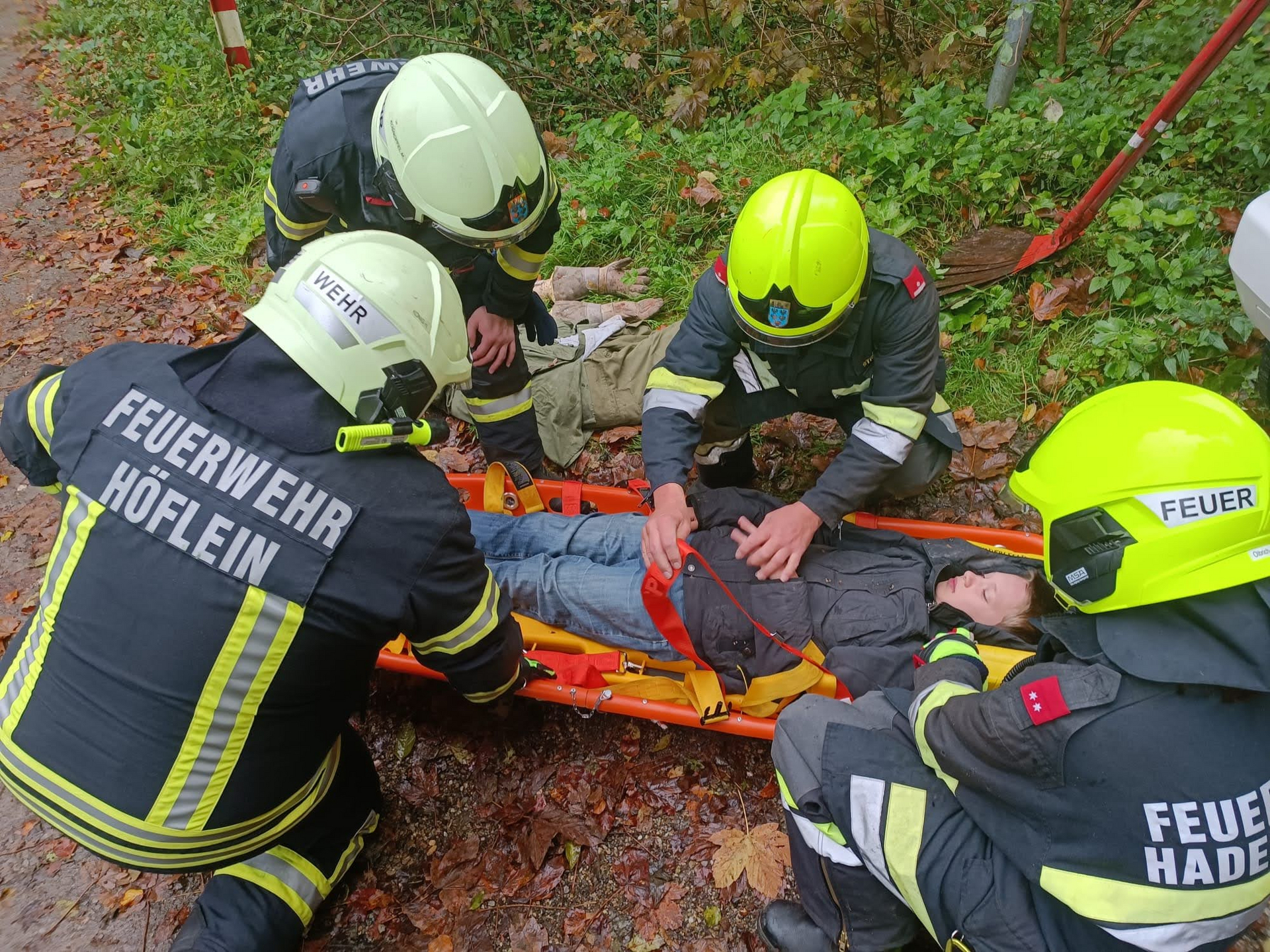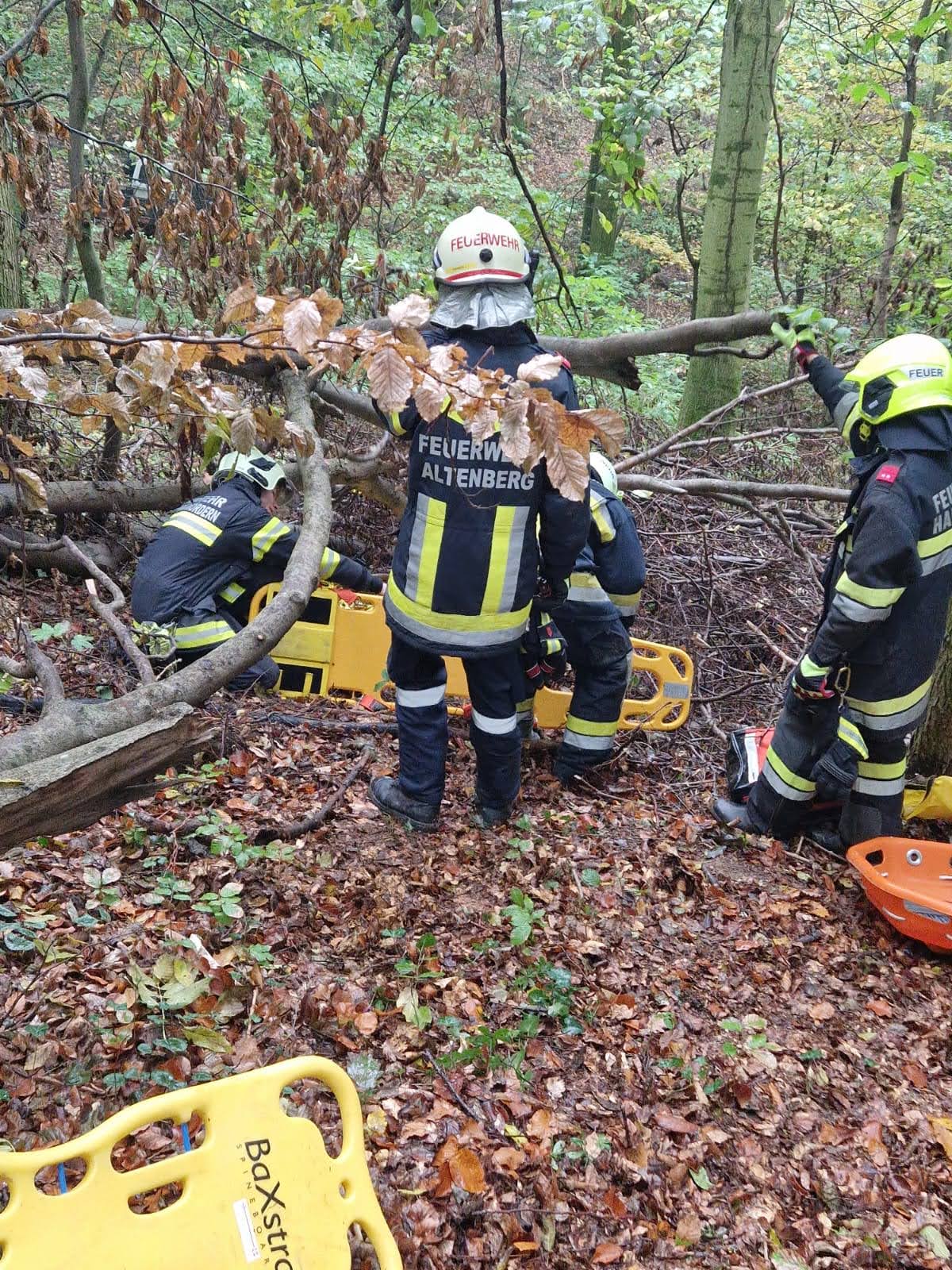 Übungsannahme war ein Forstunfall, Personen waren unter einem umgestürzten Baum eingeklemmt. Ebenso gerieten Personen unter einen Pkw und mussten mittels Hebekissen gerettet werden. Eine Person wurde vermisst und eine Personensuche wurde durchgeführt. Gleichzeitig musste ein beginnender Waldbrand unter Kontrolle gebracht werden. Unmittelbar nach der Übung musste die FF Höflein zu einem echten Einsatz ausrücken.