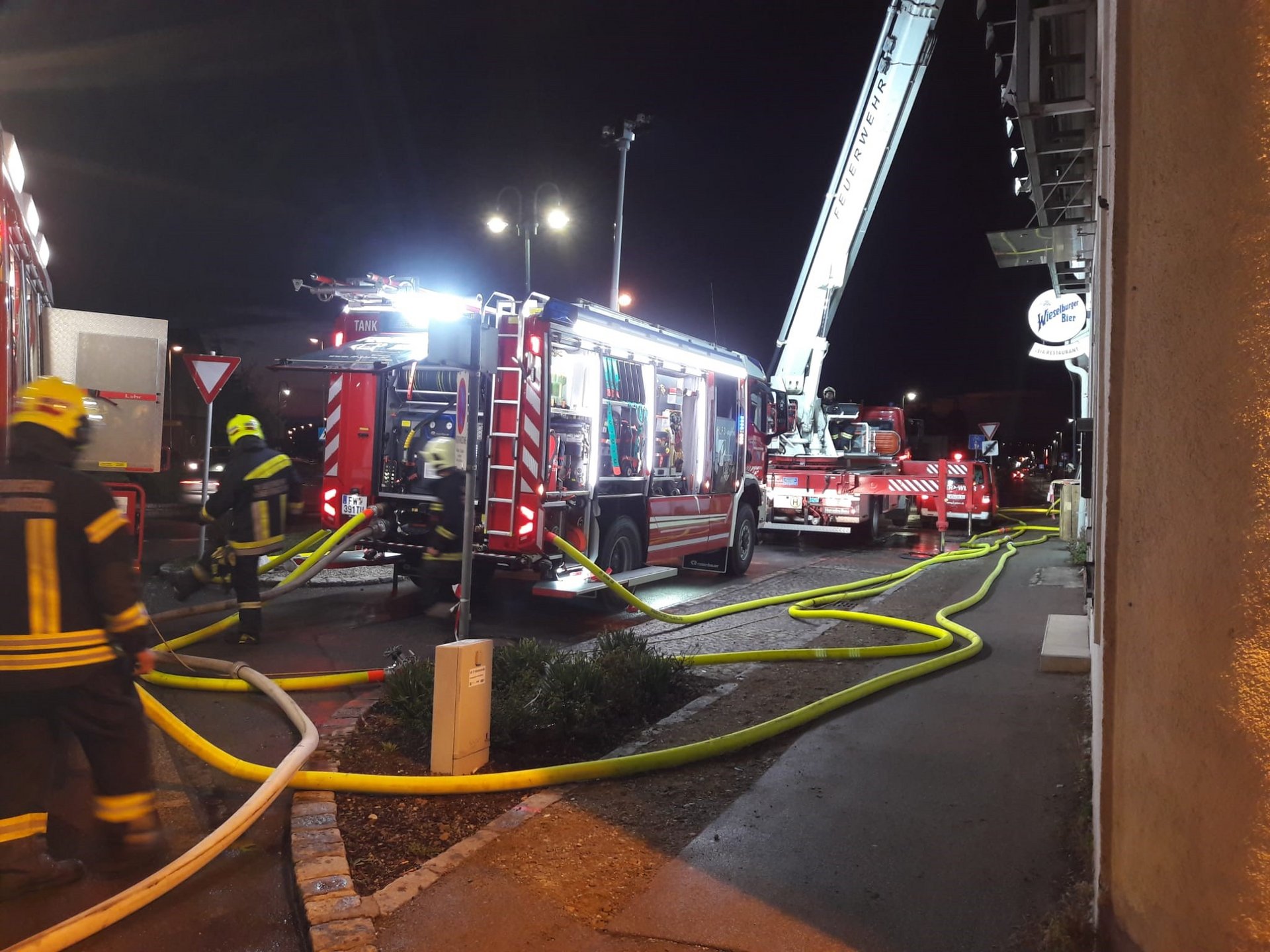 Wir stellten einen Atemschutztrupp, der sich mittels Leitern einen Zugang zum ersten Stock verschaffte, ebenso war unser TLFA2000 für die Wasserversorgung eingesetzt.