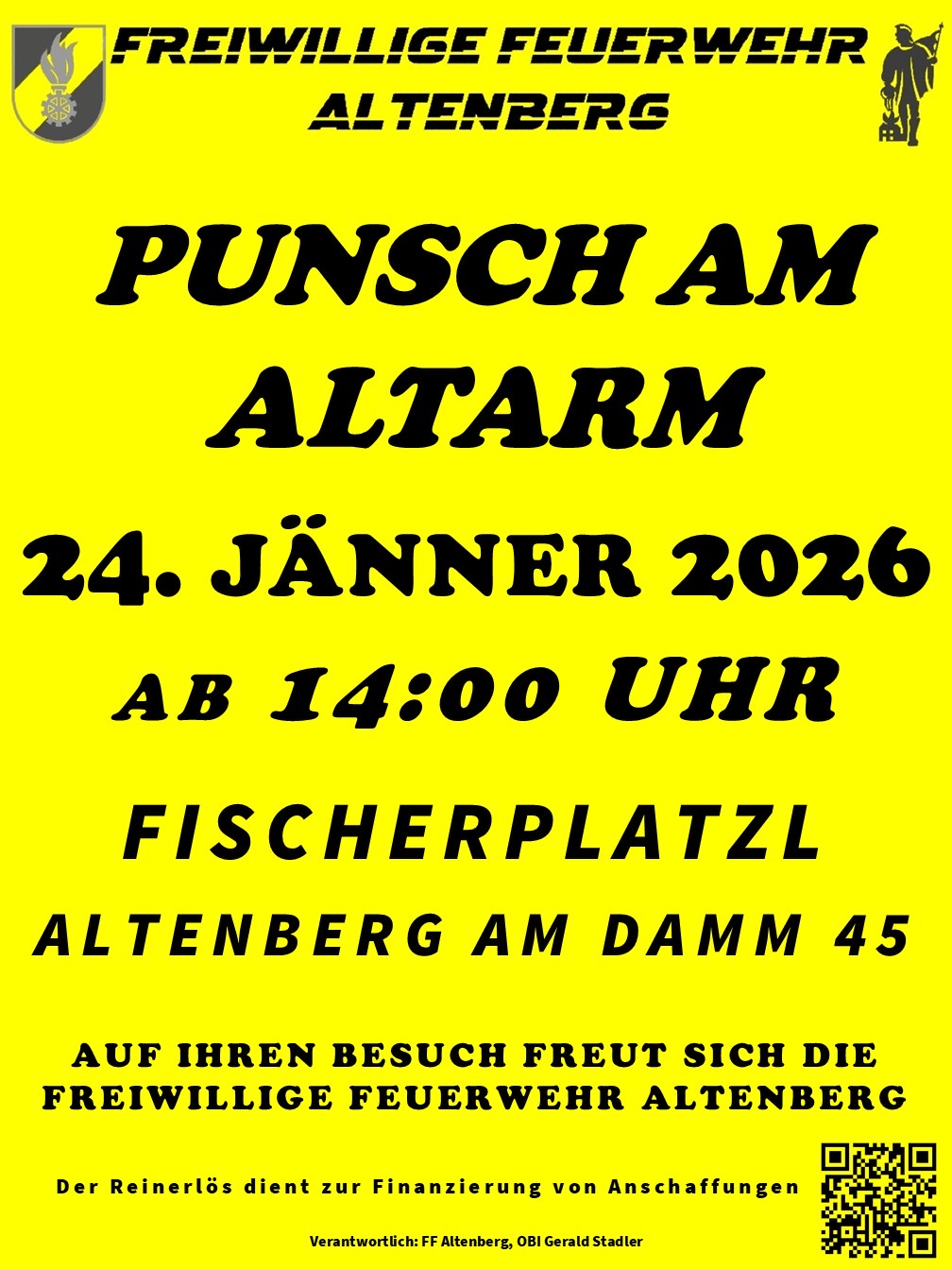 Wir laden Sie herzlichst zum Punsch am Altarm, Fischerplatzl Altenberg Am Dann 45 am 24. Jänner 2026 ab 14 Uhr ein.